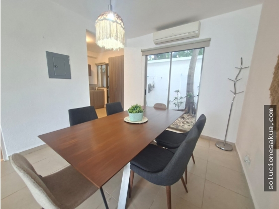 Rento Casa de 3 habitaciones y dos baños y medio completamente amueblada y equipada en Fraccionamiento Bali 1, fraccionamiento con exclusivo club deportivo para residentes y 2 filtros de vigilancia, en privada con alberca, palapa con bbq y área de juegos infantiles.