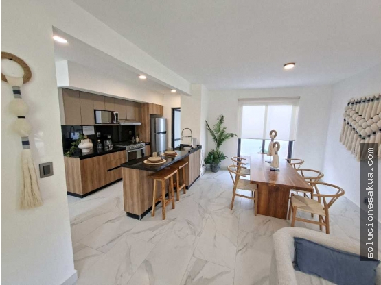 Las habitaciones también incluyen beneficios adicionales, como armarios empotrados para un mejor aprovechamiento del espacio y baño en la habitación principal, para mayor privacidad. La cocina, por su parte, cuenta con una moderna barra estilo americano, completamente equipada, junto con una bodega y calentador de agua.